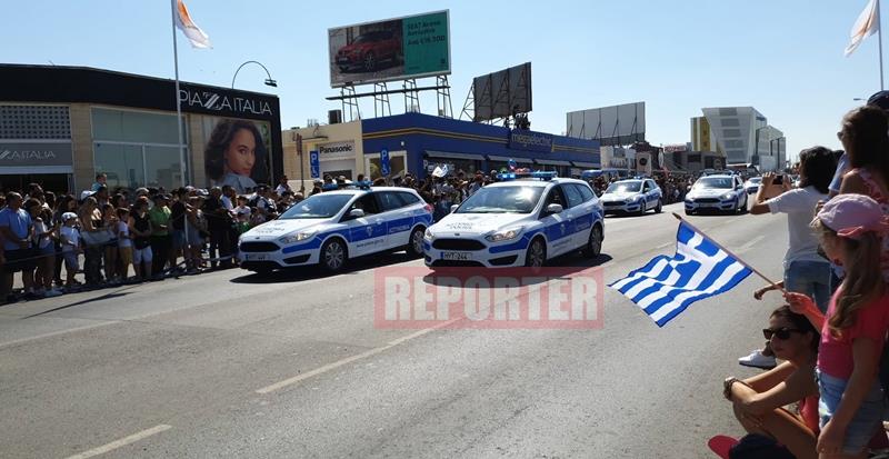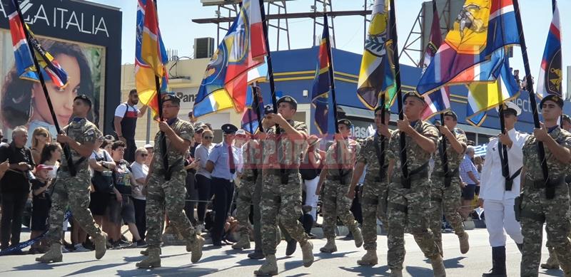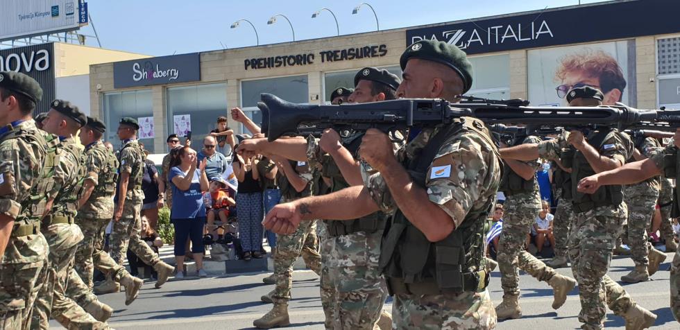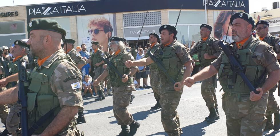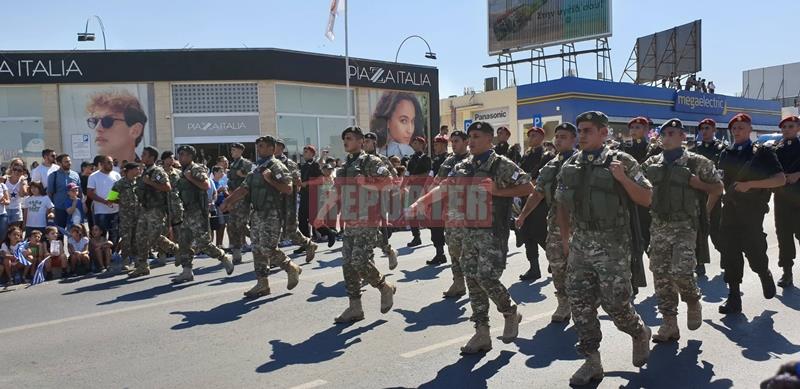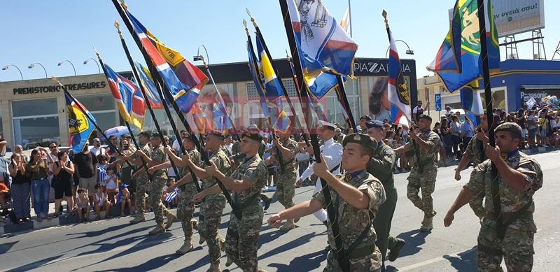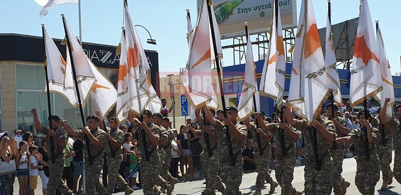 Το χαιρετισμό της παρέλασης που άρχισε στη λεωφόρο Ιωσήφ Χατζηιωσήφ στο Στρόβολο δέχεται ο Πρόεδρος Αναστασιάδης και η πολιτική ηγεσία. Την ελληνική κυβέρνηση εκπροσωπεί ο Υπουργός Εθνικής Άμυνας Νίκος Παναγιωτόπουλος.