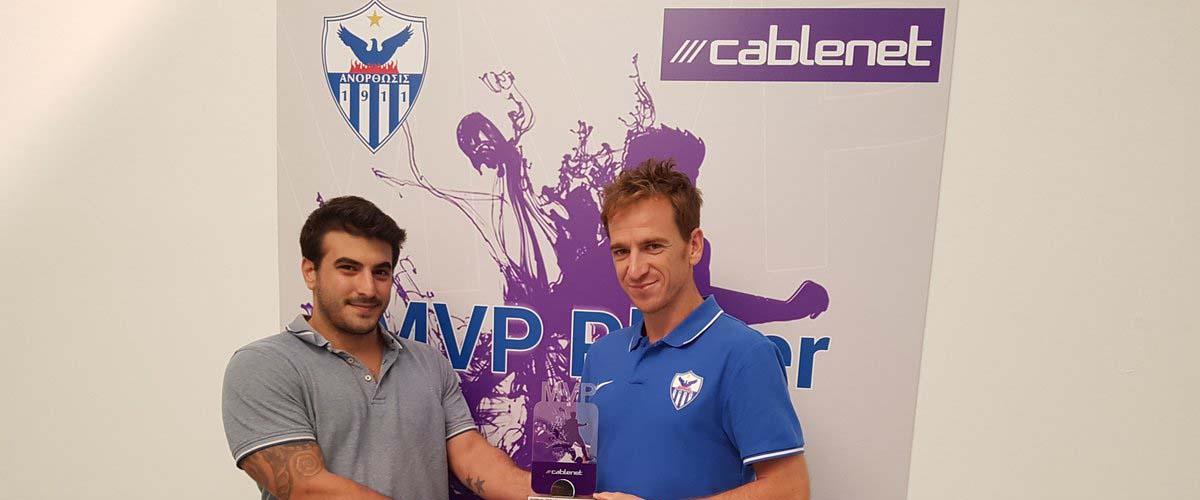 Παραδόθηκε το έπαθλο MVP Cablenet από τον οπαδό της ομάδας μας, Γιάννο Αλέξανδρου, στον Ρούμπεν Ράγιος, ο οποίος αναδείχτηκε μετά από ψηφοφορία ως ο κορυφαίος ποδοσφαιριστής στον αγώνα με την Πάφο FC #Anorthosisfc #CablenetMVP