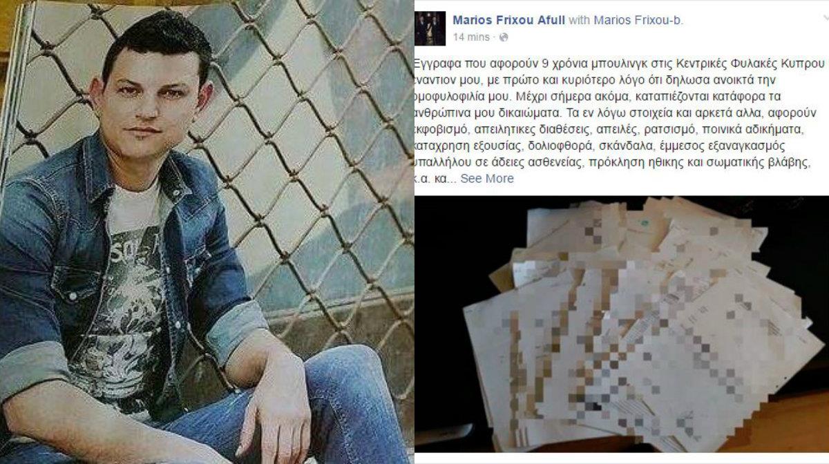 Την απειλή του ότι θα βγάλει τα άπλυτα των φυλακών στην φόρα φαίνεται να υλοποιεί ο Μάριος Φρίξου, ο οποίος ήδη συγκέντρωσε τα έγγραφα που αποδεικνύουν τον πόλεμο που δέχεται όπως λέει από την ημέρα που ανακοίνωσε πως είναι ομοφυλόφιλος.