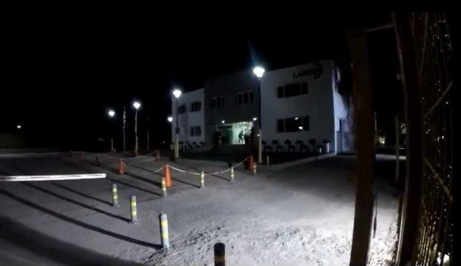 Μέλη του Ρουβίκωνα πραγματοποίησαν παρέβαση τα ξημερώματα της Κυριακής στην εταιρεία μεταλλευμάτων ΛΑΡΚΟ, που έχει έδρα στο Μαρούσι.