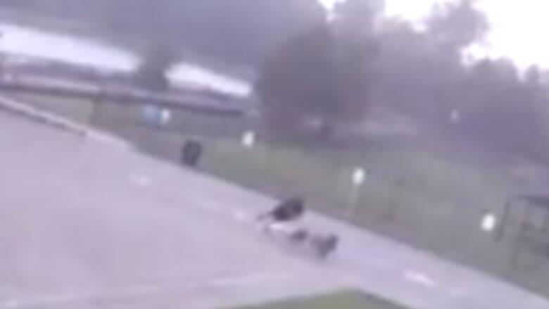 Ένα σοκαριστικό βίντεο καταγράφει τη στιγμή που ένας άντρας δέχεται κτύπημα κεραυνού ενώ περπατά στο δρόμο και πέφτει ακαριαία αναίσθητος στο έδαφος.
