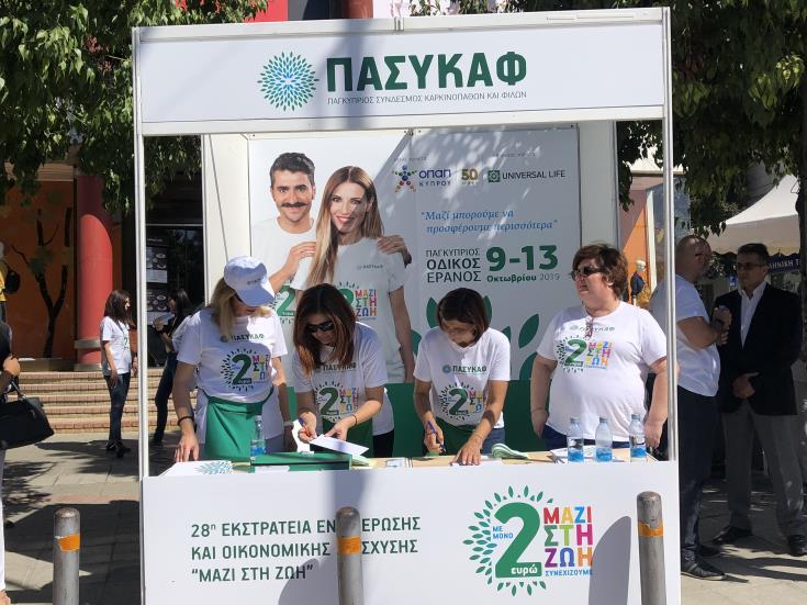 Με το σύνθημα «Μαζί στη ζωή», ξεκίνησε σήμερα οδικός έρανος, στο πλαίσιο της εκστρατείας ενημέρωσης και οικονομικής ενίσχυσης του Παγκύπριου Συνδέσμου Καρκινοπαθών και Φίλων (ΠΑΣΥΚΑΦ).
