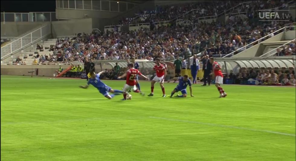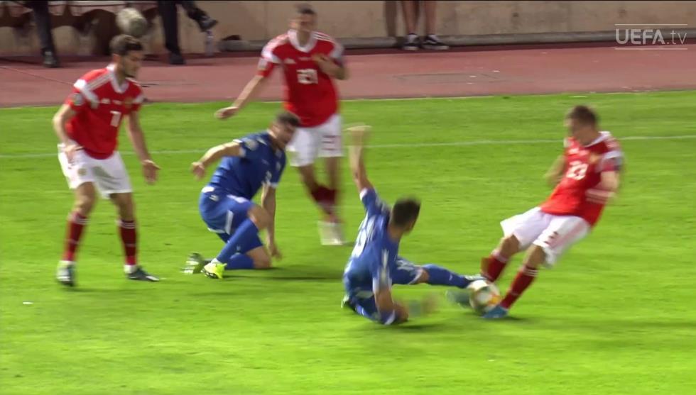 Ο Κύπριος διεθνής έκανε επικίνδυνο τάκλιν, με τον διαιτητή να του δείχνει κίτρινη κάρτα, αλλά εντός ενός λεπτού ν' αλλάζει την απόφασή του και να δείχνει την άγουσα για τα αποδυτήρια στον παίκτη της Σταντάρ.