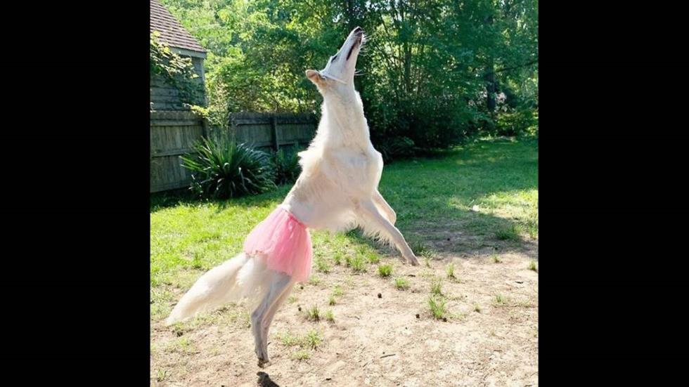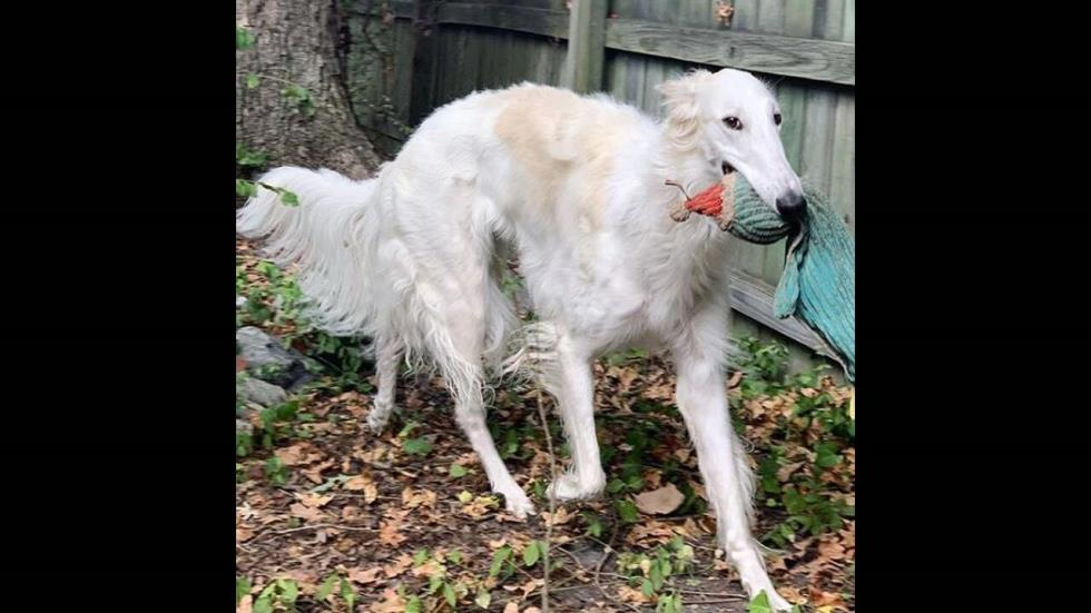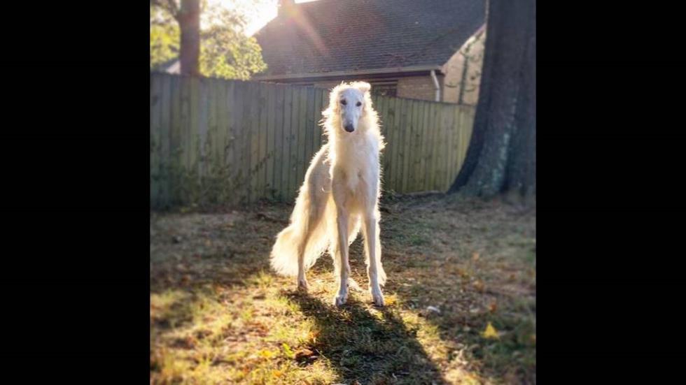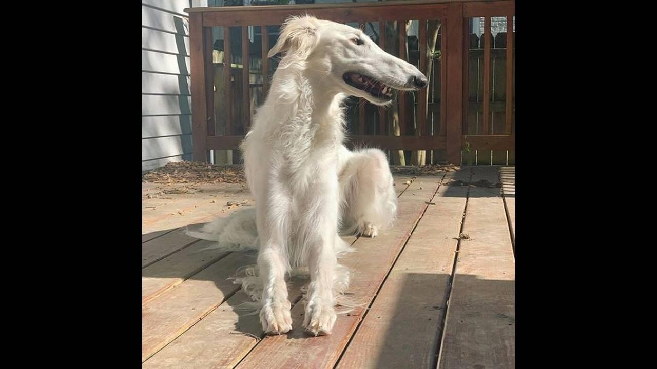 Είναι ράτσας Borzoi Sighthound, και ενδέχεται να είναι ο σκύλος με τη μακρύτερη μουσούδα στον κόσμο.