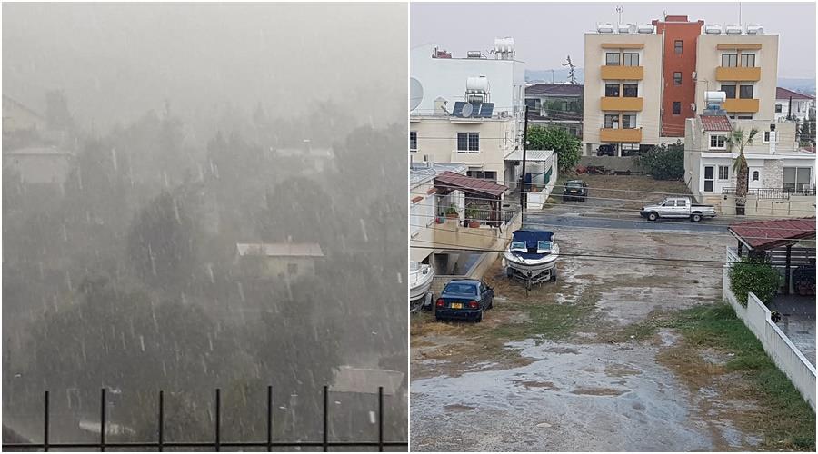 Συγκεκριμένα στη Λάρνακα η έντονη βροχόπτωση κράτησε για λίγα λεπτά, ωστόσο ήταν έντονη, ενώ την ίδια ώρα καταιγίδα σημειώθηκε και στην Αραδίππου.
