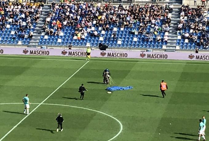 Φοβερό περιστατικό στη διάρκεια του Σασουόλο - Ίντερ με έναν άνδρα να προσγειώνεται με αλεξίπτωτο μέσα στον αγωνιστικό χώρο!