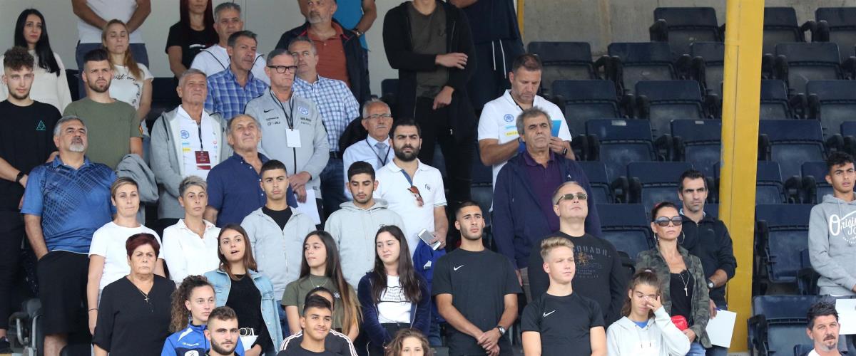 Στις εξέδρες βρίσκονται και υψηλόβαθμα στελέχη της ΚΟΠ, αλλά και πολλοί προπονητές.