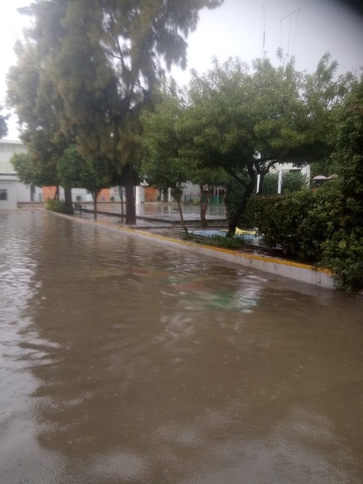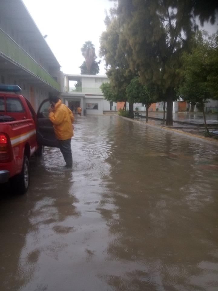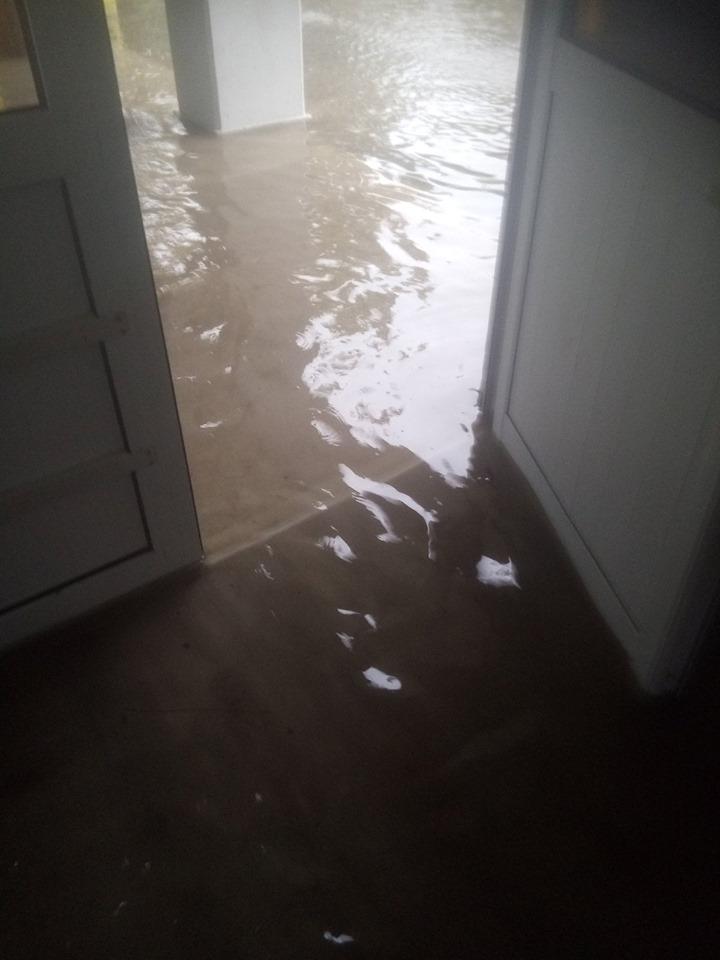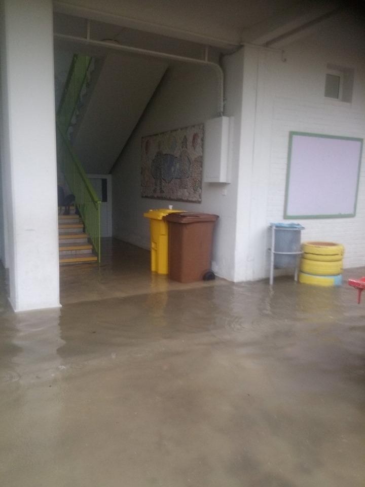 Όπως φαίνεται από τις φωτογραφίες, στο σημείο κλήθηκαν οι αρμόδιοι, για να αντλήσουν τα νερά από το σχολικό χώρο.