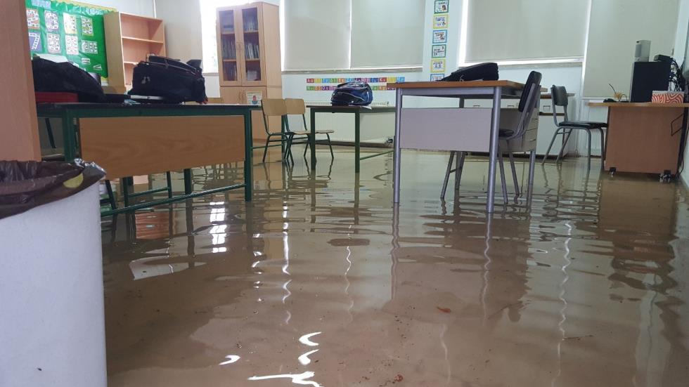 Εικόνες ντροπής από Δημοτικό Σχολείο στη Λεμεσό, το οποίο πλημμύρισε, με τα όμβρια να μπαίνουν στις σχολικές αίθουσες.