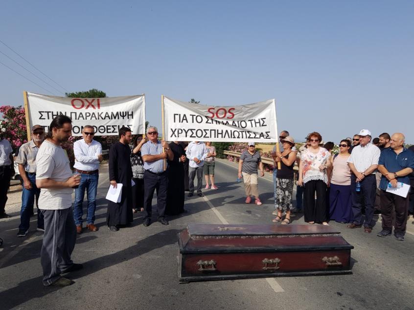 Πρόκειται για διάταγμα που επικυρώθηκε από το Δικαστήριο και το οποίο βάζει φρένο στην κατασκευή του πρατηρίου, για το οποίο οι κάτοικοι είχαν ξεσηκωθεί, καθώς όπως υποστήριζαν, υπήρχε ορατός κίνδυνος κατάρρευσης του σπήλαιού.