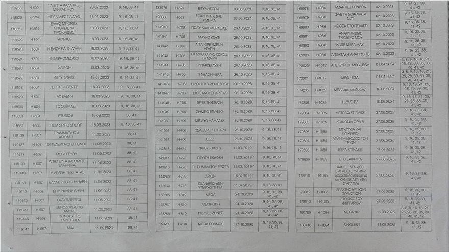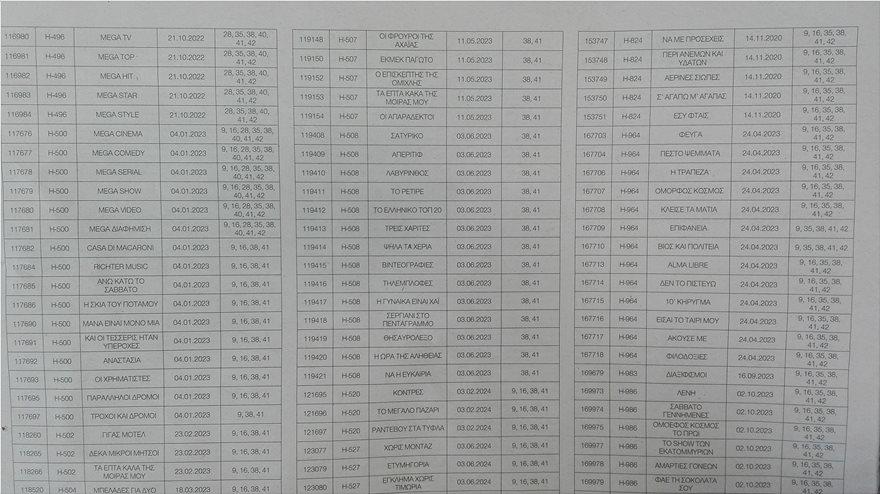 *Η ταινιοθήκη, η οποία με τη σειρά της περιλαμβάνει: α) γενικό αρχείο, β) ενημερωτικό αρχείο (εκπομπές ενημερωτικού – ψυχαγωγικού περιεχομένου), γ) τηλεπαιχνίδια, δ) μονόλεπτα γενικού περιεχομένου, ε) μυθοπλασία με σενάριο (ελληνικές σειρές), και στ) αθλητικές εκπομπές και επιλεγμένες αθλητικές διοργανώσεις (αγώνες). Επιπρόσθετα όλο το ειδησεογραφικό και αθλητικό αρχείο (δελτία, ρεπορτάζ, στιγμιότυπα αγώνων και διοργανώσεων)