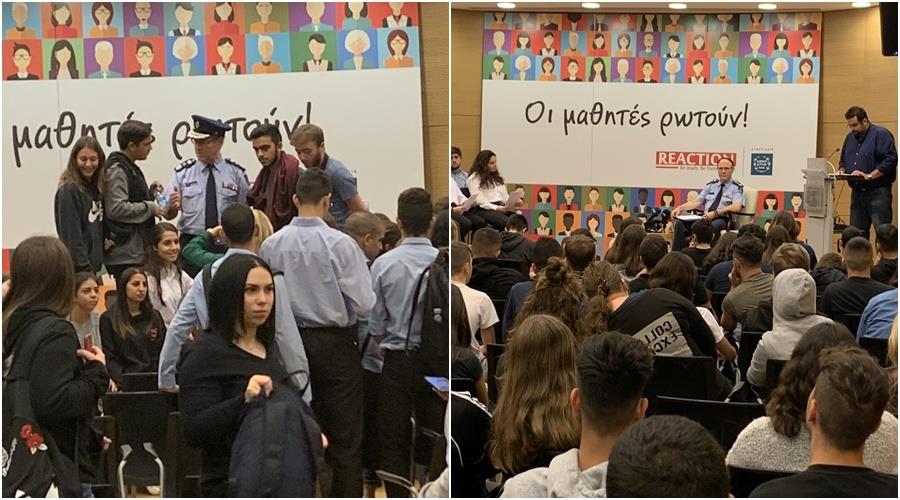 Ο Αρχηγός Αστυνομίας κ. Κύπρος Μιχαηλίδης, είχε σήμερα Debate με μαθητές ιδιωτικών και δημόσιων σχολείων, το οποίο πραγματοποιήθηκε το πρωί, στο πολιτιστικό Κέντρο της Τράπεζας Κύπρου στη Φανερωμένη, στο πλαίσιο του προγράμματος ΑΘΗΝΑ του οργανισμού REACTION και της ΤΡΑΠΕΖΑΣ ΚΥΠΡΟΥ.