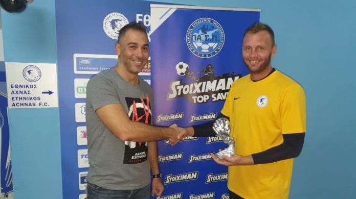 Την απονομή έκανε ο κ. Άγγελος Χοντουλίδης, Country Manager της χορηγού εταιρείας Stoiximan. Στη συνέχεια ο τερματοφύλακας του Εθνικού Άχνας έκανε τις πιο κάτω δηλώσεις: