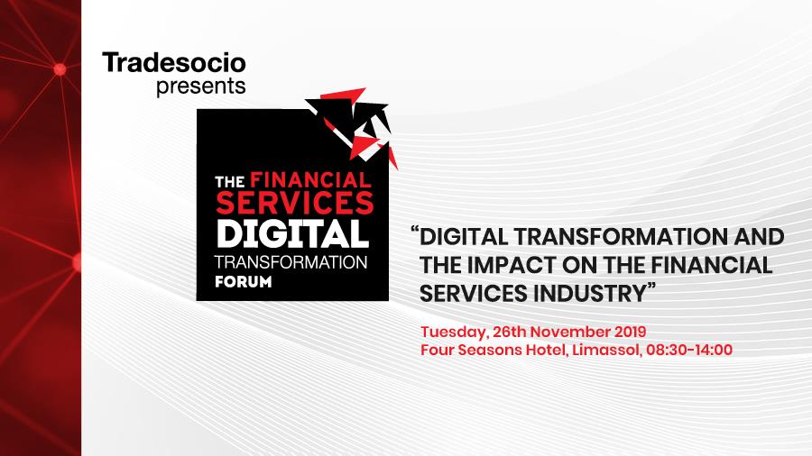 Η Tradesocio διοργανώνει το Financial Services Digital Transformation Forum με θέμα «Digital Transformation and the Impact on the Financial Services Industry», την Τρίτη 26 Νοεμβρίου 2019, στο ξενοδοχείο Four Seasons στη Λεμεσό.