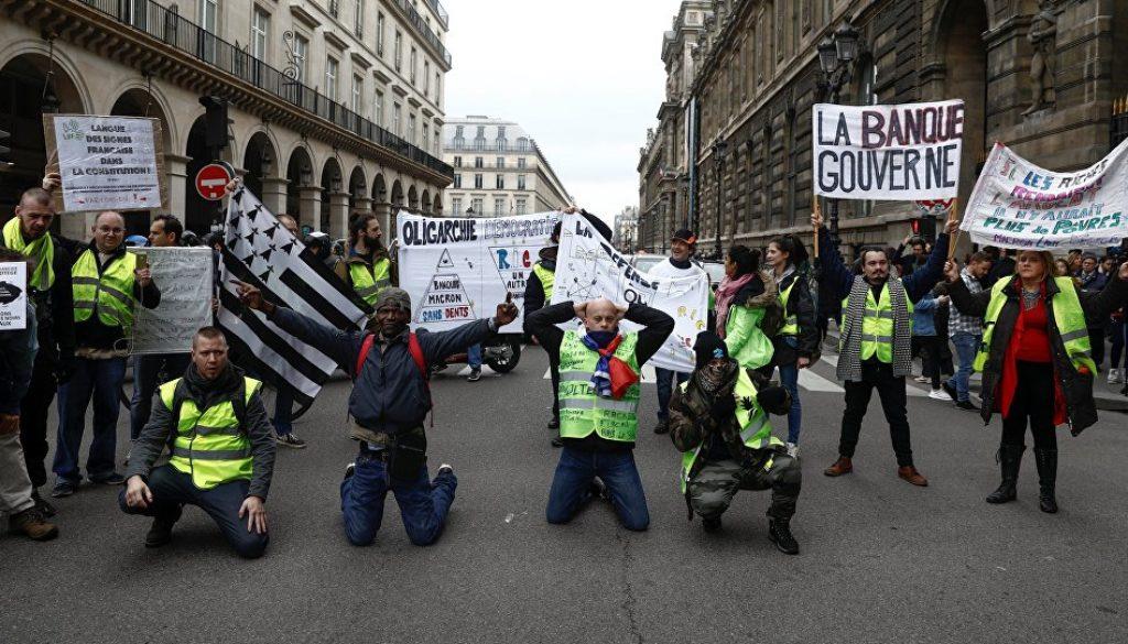 Οι ακτιβιστές, μέλη των περιβαλλοντικών οργανώσεων ANV-COP21 και Friends of the Earth, διαμαρτύρονταν για τα ενεργειακά σχέδια εξορύξεων, τα οποία, όπως καταγγέλλουν, επιτείνουν την κλιματική αλλαγή.