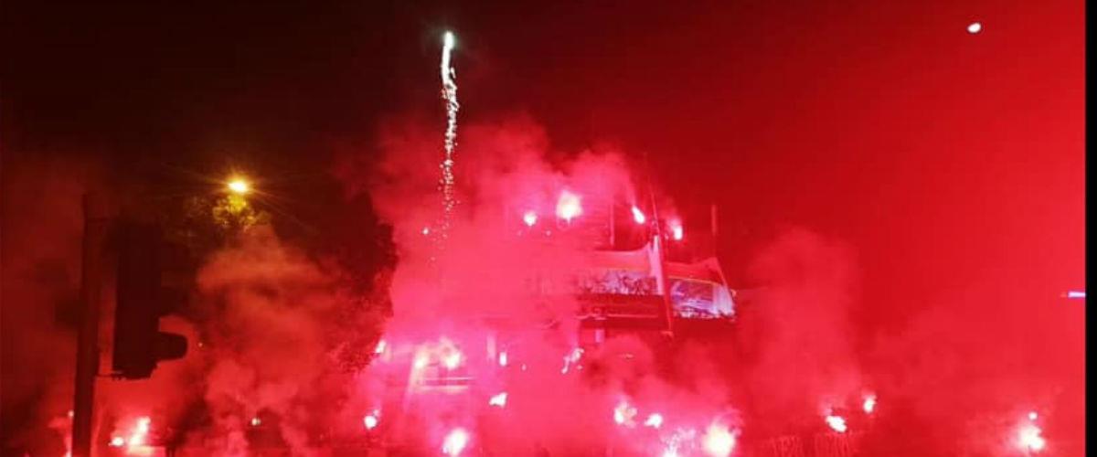 Με φωτοβολίδες και συνθήματα, οι γαλαζοκίτρινοι δημιούργησαν μια ιδιαίτερη ατμόσφαιρα στην καρδιά της πρωτεύουσας, ενώ με βίντεο το οποίο ανέβασαν, ευχήθηκαν στην ομάδα τους, χρόνια πολλά.