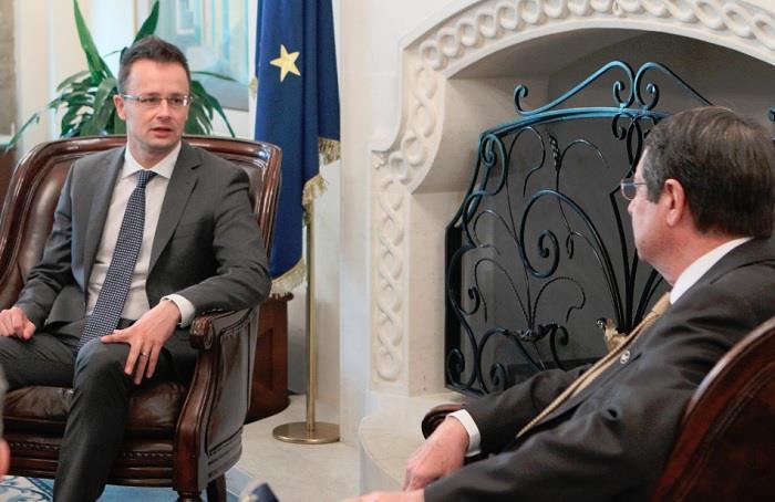 Μια μπάλα ποδοσφαίρου, υπογεγραμμένη από τον Φερεντς Πούσκας χάρισε ο υπουργός Εξωτερικών της Ουγγαρίας στον Πρόεδρο Αναστασιάδη.