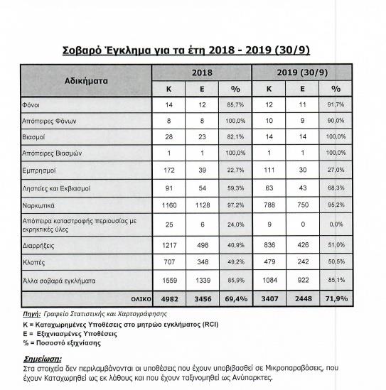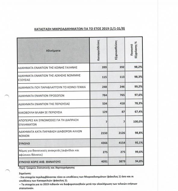 Ενδιαφέρον παρουσιάζουν και οι αριθμοί για το σοβαρό έγκλημα και τα μικροαδικήματα, οι οποίοι έχουν ως εξής: