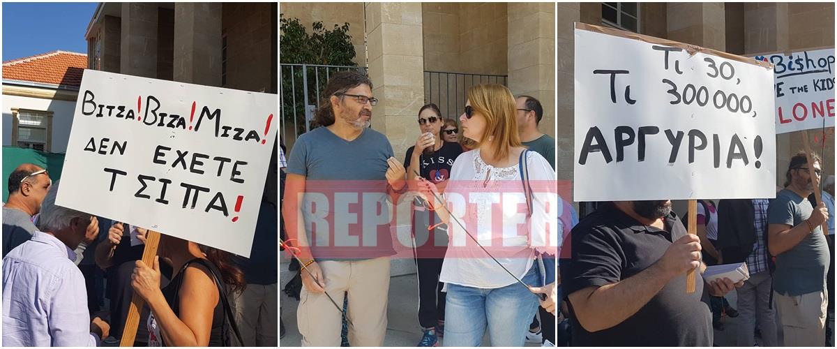 Οι παρευρισκόμενοι έδεσαν βίτσες πάνω στα κάγκελα της Αρχιεπισκοπής και φώναξαν συνθήματα όπως «ρεζίλι» και «έξω από τα σχολεία, κοσμική παιδεία».