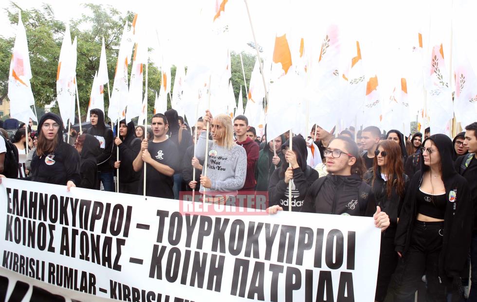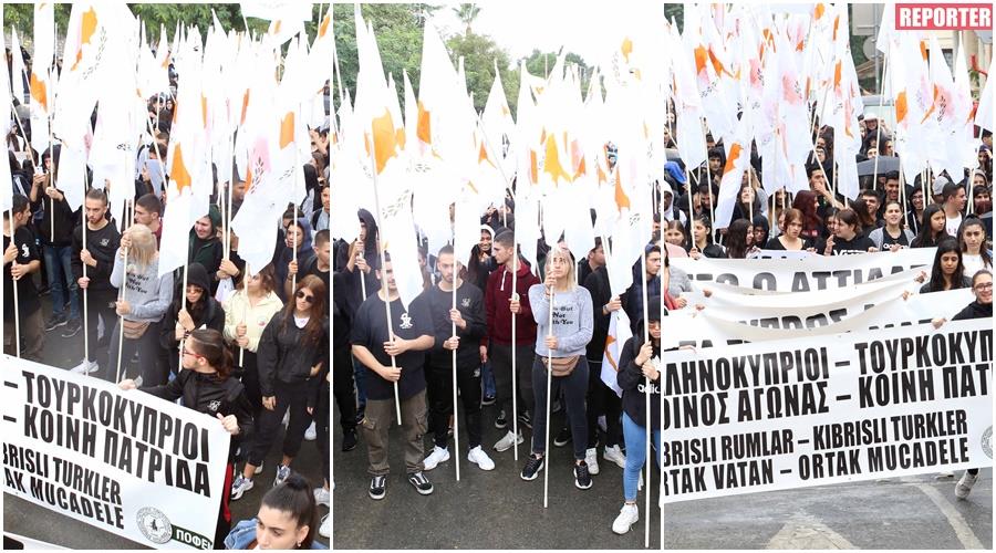 Με πανό και κυπριακές σημαίες βγήκαν στους δρόμους οι μαθητές και οι φοιτητές, καταδικάζοντας την ανακήρυξη του ψευδοκράτους.