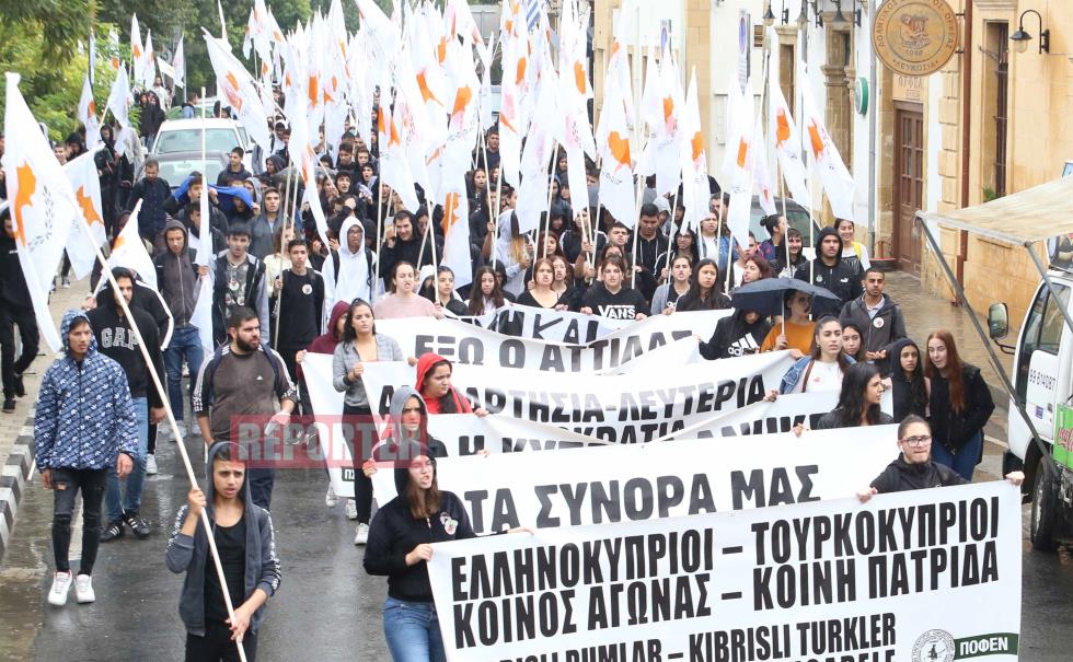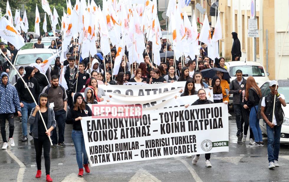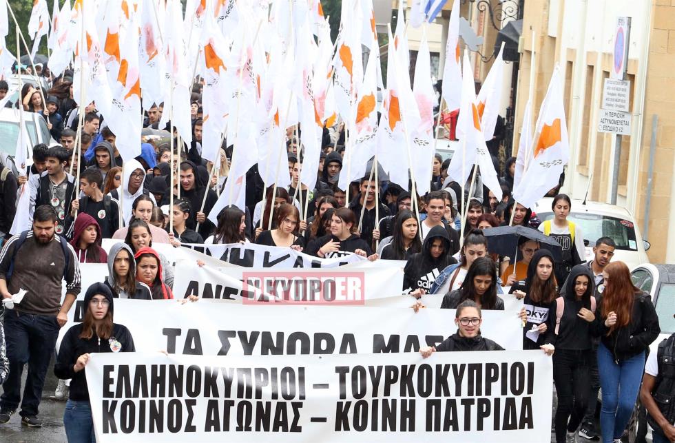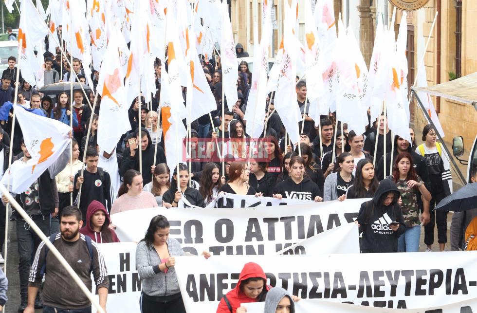 Οι μαθητές και οι φοιτητές πήραν τις κυπριακές σημαίες και αψηφώντας την βροχή, πραγματοποίησαν τις αντικατοχικές εκδηλώσεις τους, σε κάθε επαρχία της Κύπρου.