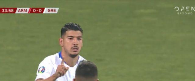 Η Εθνική Ελλάδας άνοιξε το σκορ επί της Αρμενίας στο 34ο λεπτό, σε αγώνα για τα Προκριματικά του Ευρωπαϊκού Πρωταθλήματος του 2020.