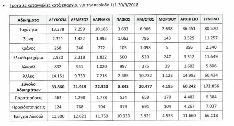 Σε έναν απίστευτο αριθμό καταγγελιών για τροχαίες παραβάσεις προέβη και φέτος η Αστυνομία, με την υπέρβαση του ορίου ταχύτητας να βρίσκεται διαχρονικά στην πρώτη γραμμή των αδικημάτων.