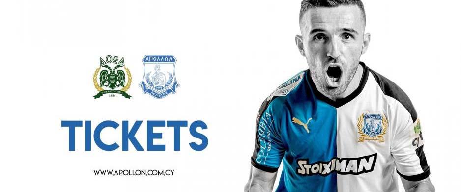 Η Εταιρεία Απόλλων Ποδόσφαιρο (Δημόσια) Λτδ ενημερώνει ότι το απόγευμα της Τρίτης (19/11, 15:00), αρχίζει η προπώληση των εισιτηρίων για τον εκτός έδρας αγώνα της 10ης αγωνιστικής του πρωταθλήματος CYTA, με την Δόξα Κατωκοπιάς (Δευτέρα, 25/11, 19:00) στο Μακάρειο Στάδιο στην Λευκωσία.