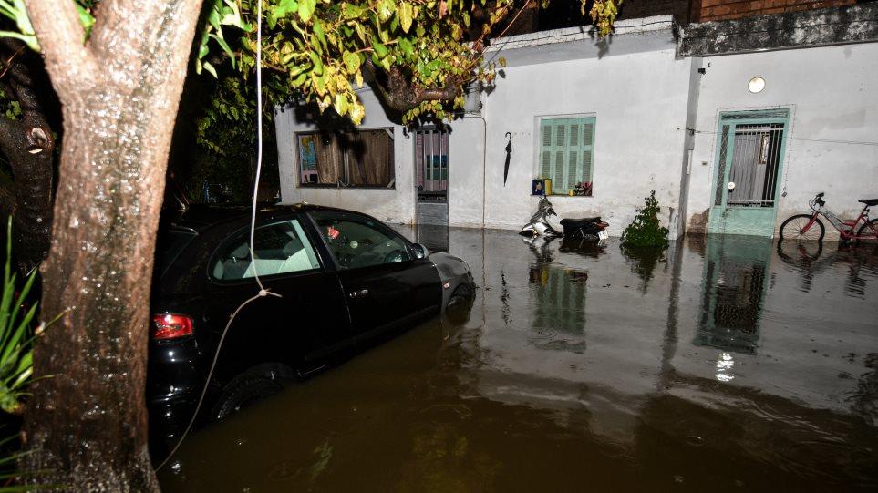 Από την ισχυρή βροχόπτωση οι δρόμοι μετατράπηκαν σε χειμάρρους.