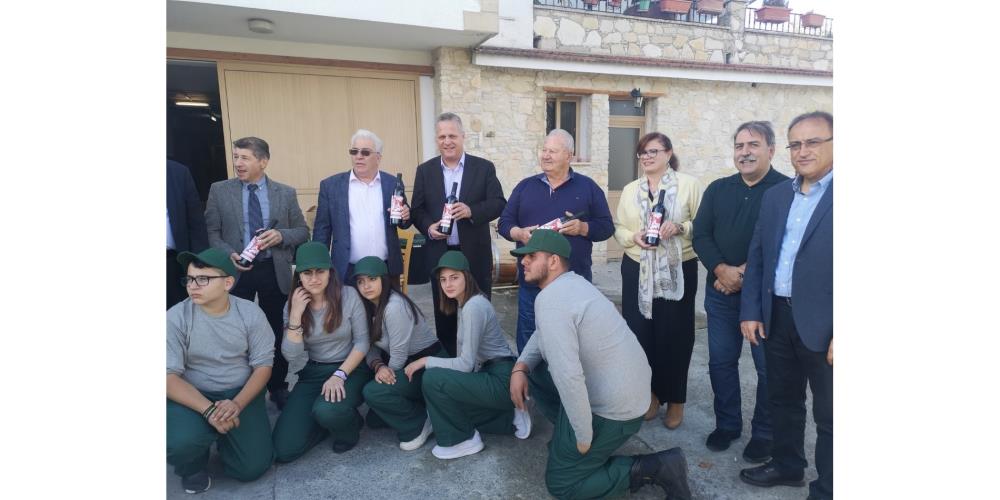 Σήμερα, πρόσθεσε, εμφιαλώνονται τα πρώτα 500 μπουκάλια κόκκινο κρασί, τα πρώτα 100 μπουκάλια λευκό κρασί και τα πρώτα 100 μπουκάλια ζιβανίας, των πρώτων μαθητών του κλάδου αμπελουργίας-οινολογίας της Σχολής Ομόδους.