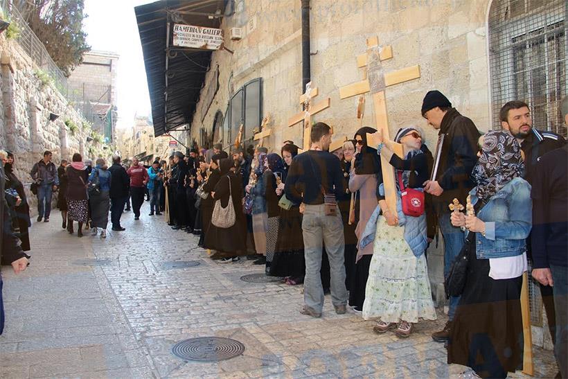 Οι πιστοί διέσχισαν την Παλιά Πόλη της Ιερουσαλήμ ακολουθώντας την Οδό του Μαρτυρίου και σταματώντας στους σταθμούς κατά μήκιος της για να προσευχηθούν.