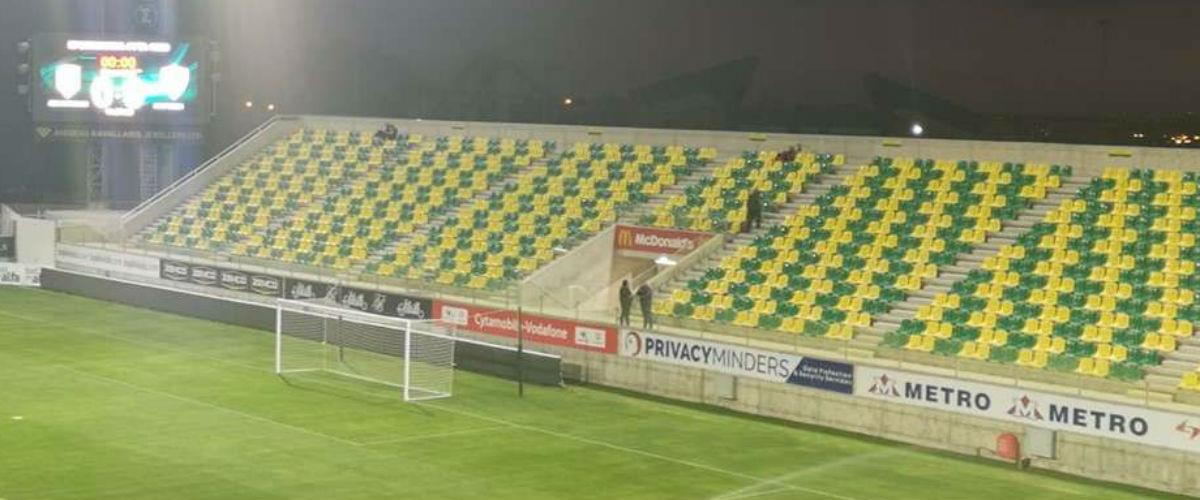 Στο στάδιο της Λάρνακας, βρίσκονται ο Πρόεδρος της Επιτροπής Διαιτησίας, Μπερτράντ Λαγιέκ, αλλά και ακόμη δύο άτομα από την ΚΟΠ.