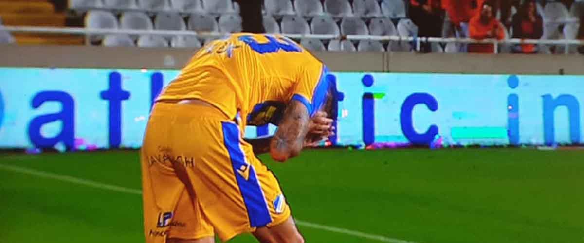 Μια σκληρή μονομαχία με τον Μαυρία της Ομόνοιας είχε ο Ζοαζίνιο, με τον ποδοσφαιριστή του ΑΠΟΕΛ, να σωριάζεται στο έδαφος κρατώντας το κεφάλι του.