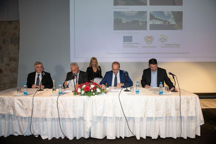 Το πρωί, ο Δήμαρχος Πάφου Φαίδωνας Φαίδωνος υπέγραψε με την ανάδοχο εταιρεία Παναγιώτης Μιχαλίτσης Ανώνυμος Τεχνική Οικοδομική – Εργοληπτική Εμπορική και Ενεργειακή Εταιρεία με δ.τ. Λάκων Α.Τ.Ε., το συμβόλαιο για την εκτέλεση του έργου «Δημιουργία δικτύου υποδομών δημοσίων συγκοινωνιών και δημόσιας υγιεινής στην Πάφο και τη Γεροσκήπου με τη μέθοδο Μελέτη- Κατασκευή- Συντήρηση», συνολικής δαπάνης 7.613.382 ευρώ.