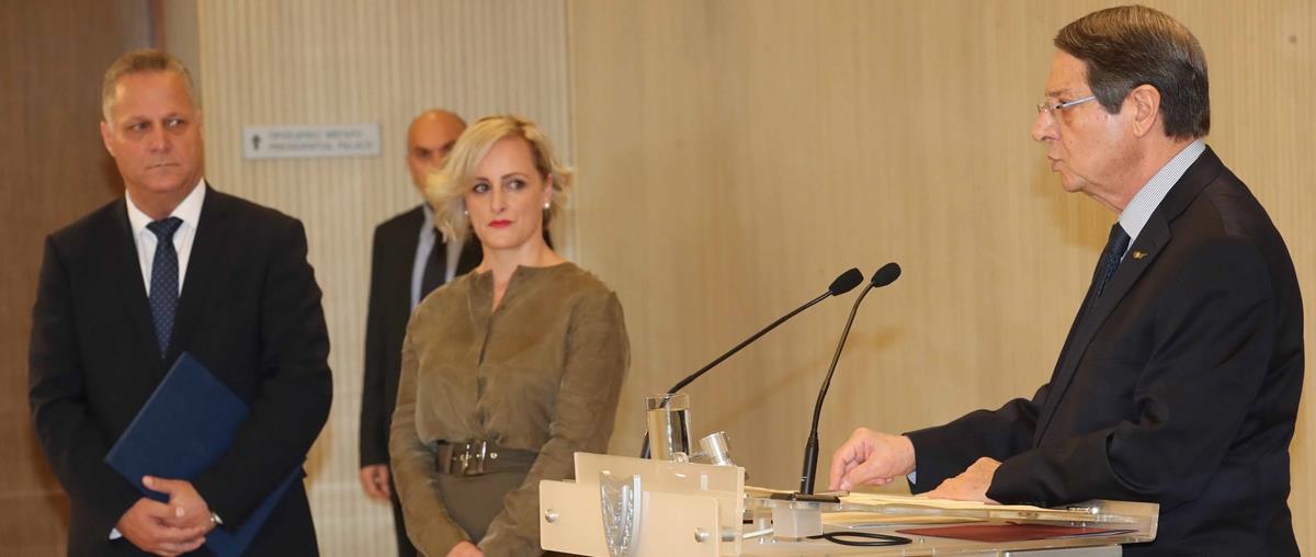 Στην ομιλία του κατά την τελετή, ο Πρόεδρος Αναστασιάδης είπε ότι «ασκώντας τις εξουσίες που μου παρέχονται από το Σύνταγμα,  προχωρώ σήμερα στο διορισμό δύο εκλεκτών συνεργατών στις θέσεις της Επιτρόπου Περιβάλλοντος και του Επιτρόπου Ανάπτυξης Ορεινών Κοινοτήτων, αντίστοιχα.