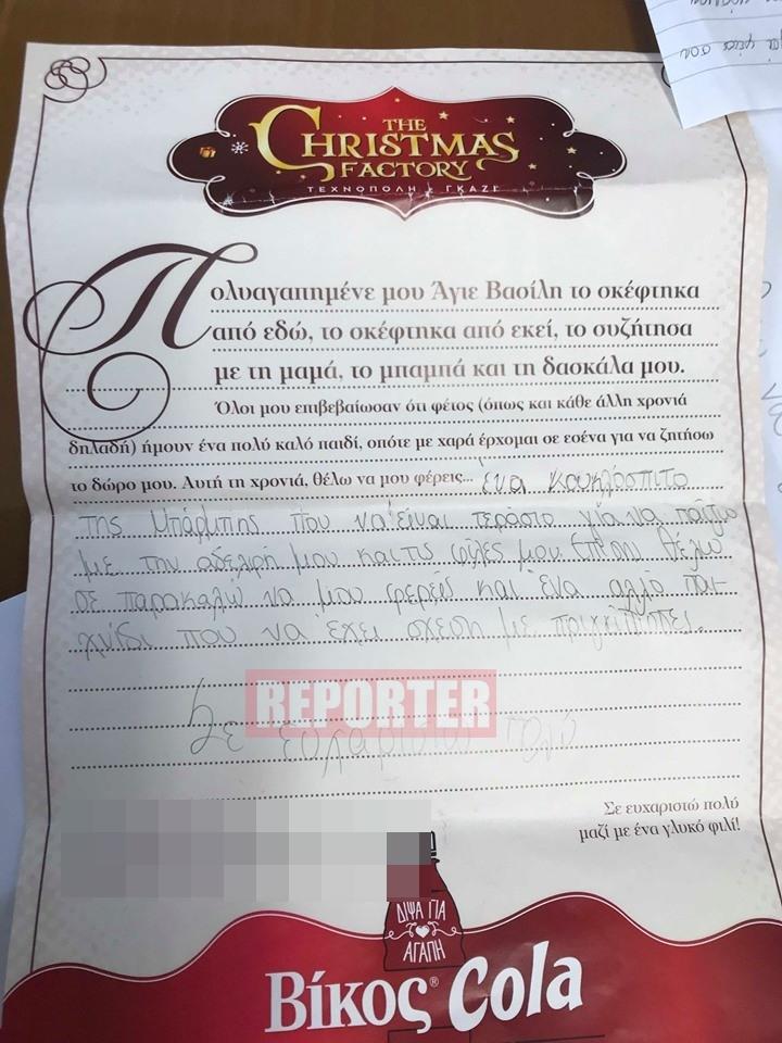 «Άγιε Βασίλη δεν θα σου ζητήσω πολλά πράγματα. Θέλω να γίνει καλά η γιαγιά μου η Στέλλα και να έρθει ένα μωρό στην οικογένειά μας».<