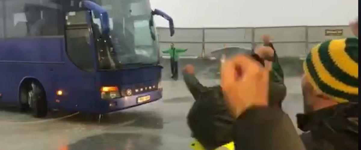 Πριν την έναρξη του αγώνα με την Πάφο FC, οι οπαδοί της ΑΕΚ υποδέχθηκαν με συνθήματα του ποδοσφαιριστές της ομάδας.