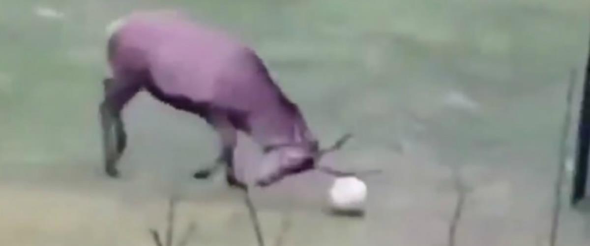 Από το μεσημέρι του Σαββάτου έχει κάνει τον γύρο του κόσμου διαδικτυακά το βίντεο με το ελάφι που στέλνει μια μπάλα σε μια μικρή εστία με τα κέρατά του και το πανηγυρίζει σαν να έχει απόλυτη αντίληψη του γκολ!