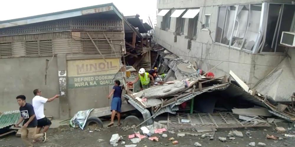 Σύμφωνα με στελέχη των υπηρεσιών αντιμετώπισης καταστροφών, πιστεύεται πως πέντε άνθρωποι έχουν παγιδευτεί στα συντρίμμια του εμπορικού κέντρου στην Παντάντα, πόλη στο νησί Μιντανάο, η οποία απέχει περίπου 20 χιλιόμετρα από το επίκεντρο του σεισμού 6,8 βαθμών ο οποίος έπληξε την περιοχή χθες Κυριακή.