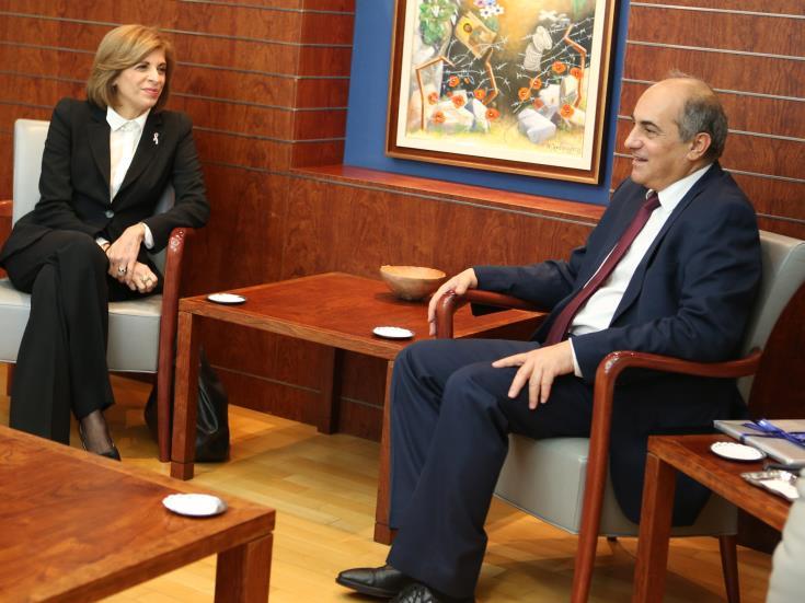 Όπως αναφέρει ανακοίνωση της Βουλής, ο κ. Συλλούρης δέχθηκε την Πέμπτη την Επίτροπο της Ευρωπαϊκής Ένωσης αρμόδια για την Υγεία και την Ασφάλεια Τροφίμων, Στέλλα Κυριακίδου, η οποία πραγματοποιεί την πρώτη επίσημη επίσκεψή της στην Κύπρο υπό την ιδιότητα της Επιτρόπου.