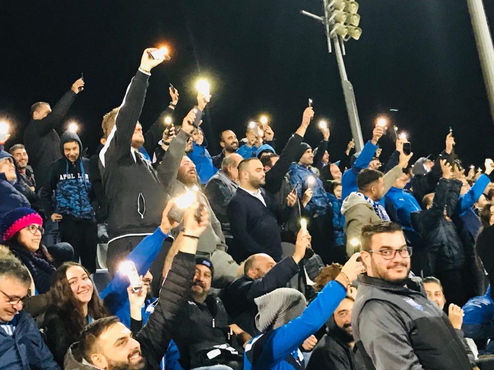 Μάλιστα, οι οπαδοί των γαλάζιων, άναψαν με τα τηλέφωνά τους τα φανάρια, έτσι ώστε να βοηθήσουν με τον δικό τους τρόπο, για να... φωτιστεί το γήπεδο.