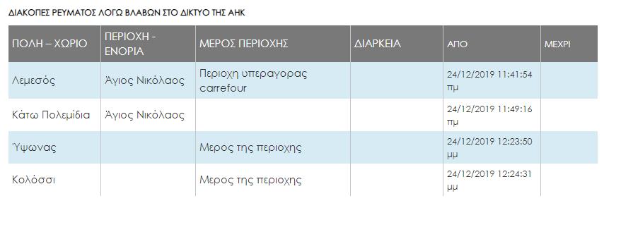 Στο σημείο βρίσκεται συνεργείο της ΑΗΚ, το οποίο άρχισε τις προσπάθειες για επιδιόρθωση της βλάβης, ωστόσο, όπως ανέφερε η κ. Παπαδοπούλου, θα χρειαστούν αρκετό χρόνο.