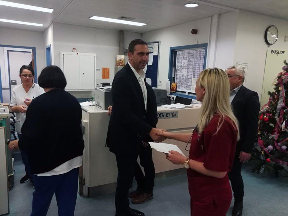 Ο Υπουργός Υγείας Κωνσταντίνος Ιωάννου, επέλεξε να επισκεφθεί τα δύο νοσοκομεία, εκφράζοντας τους τις ευχαριστίες του, που βρίσκονται στο καθήκον ανήμερα Χριστουγέννων.