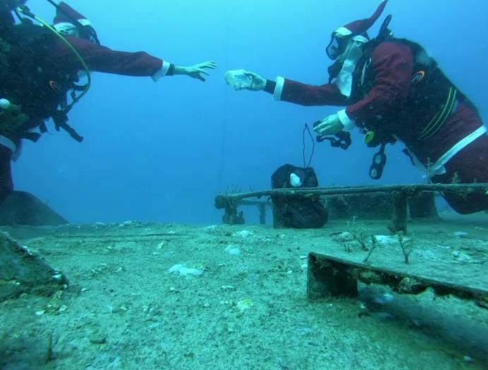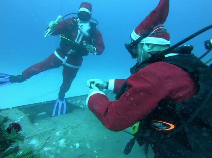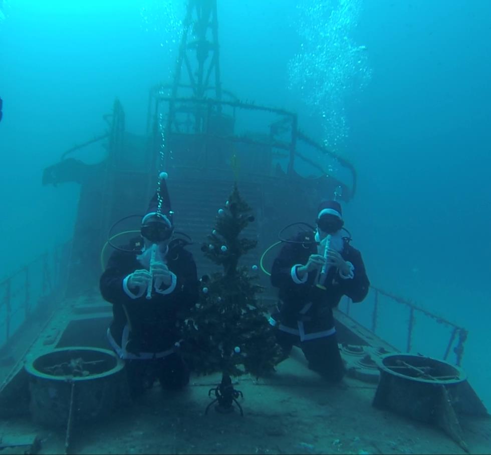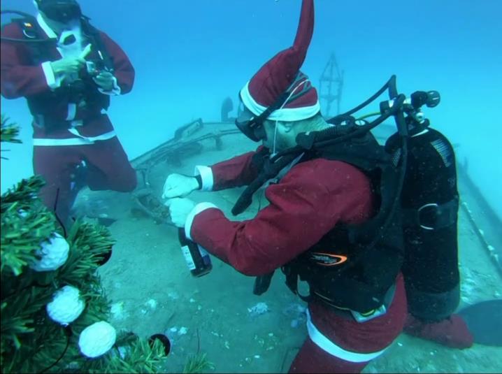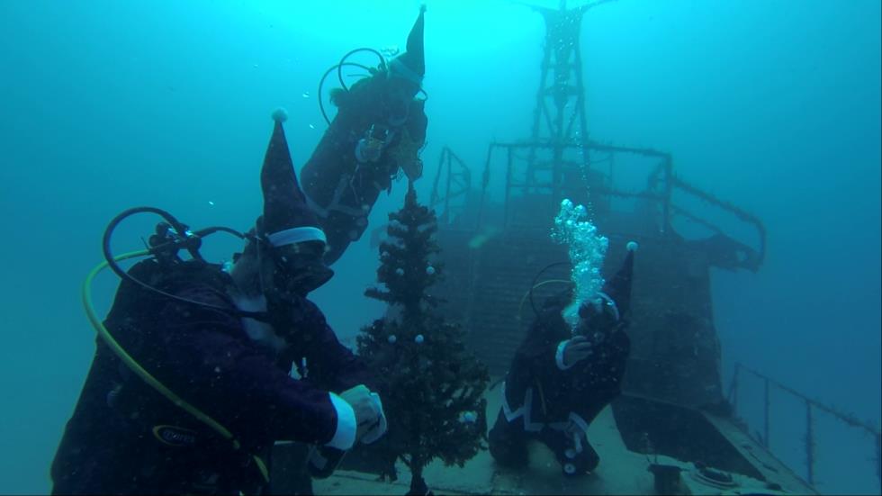 Πρόκειται για τους δύτες του «Summer Divers», οι οποίοι έκαναν παραμονή Χριστουγέννων, στο ναυάγιο «Κερύνεια», έπαιξαν τα κάλαντα και τοποθέτησαν χριστουγεννιάτικο δέντρο, ντυμένοι Άγιοι Βασίληδες.H συγκεκριμένη ομάδα, έκανε παράδοση τις συγκεκριμένες ενέργειες, αφού τα τελευταία 13 χρόνια γιορτάζουν τη γέννηση του Χριστού με αυτό τον ξεχωριστό κι ιδιαίτερο τρόπο.