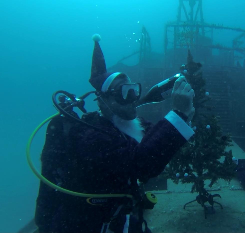 Εκτός από όλα τα άλλα, οι δύτες, αντάλλαξαν δώρα κάτω από το νερό και ήπιαν την... σαμπάνια τους!