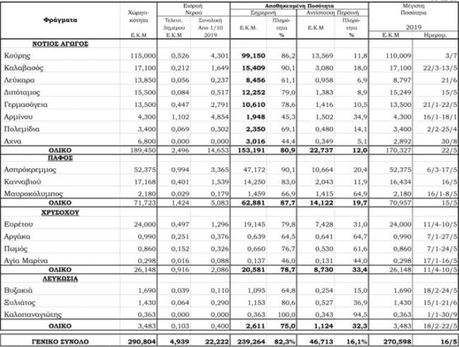 Πάντως σύμφωνα με τα στοιχεία του Τμήματος Αναπτύξεως Υδάτων, η κατάσταση στα φράγματα είναι εξαιρετική.