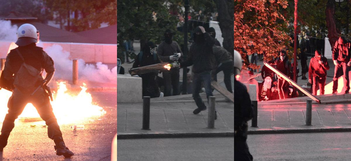 Τα ΜΑΤ απώθησαν τους διαδηλωτές από τον Άγνωστο Στρατιώτη ενώ αποσύρθηκαν και οι τσολιάδες από το μνημείο του Άγνωστου Στρατιώτη.