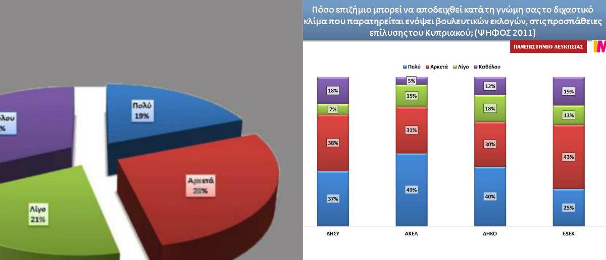 Το γεγονός αυτό μπορεί να λεχθεί πως συνιστά μια μορφή άτυπης επιβράβευσης των πολιτικών που ως κυβερνών κόμμα εφαρμόζει σήμερα ο ΔΗΣΥ, παρά το ότι κάποιες από τις πολιτικές αυτές θα μπορούσαν να χαρακτηρισθούν ως αντιλαϊκές και εξαιρετικά επώδυνες στα ζητήματα της οικονομίας. Σε ό,τι αφορά το αντίπαλο δέος, δηλαδή το ΑΚΕΛ, ως το κόμμα που μπορεί να κυβερνήσει καλύτερα τον τόπο θεωρείται μόλις από ένα 16% των πολιτών.