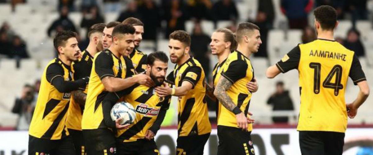 Αν εξαιρεθεί μια ευκαιρία του Ντέλετιτς μόλις στο 2ο λεπτό, η ΑΕΚ δυσκολευόταν να κάνει ευκαιρίες και χρειάστηκε ένα πέρα για πέρα αμφισβητούμενο πέναλτι στο 29΄ για ανοίξει το σκορ. Έστω και έτσι, ο Λιβάγια ευστόχησε κάνοντας το 1-0 αλλά η κακή εικόνα των «κιτρινόμαυρων» συνεχίστηκε και αυτό είχε σαν αποτέλεσμα, όσο κυλάνε τα λεπτά, ο Παναιτωλικός να παίρνει μέτρα να πιστεύει στην ισοφάριση και τελικά, να φτάνει σε αυτή στο 42' με τον Ντίας να εκμεταλλεύεται την ολιγωρία των στόπερ της Ένωσης και να ισοφαρίσει.