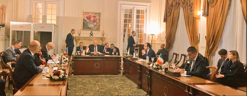 Στην πενταμερή συνάντηση, που πραγματοποιήθηκε στο Κάιρο, συμμετείχαν οι υπουργοί Εξωτερικών της Ελλάδας Νίκος Δένδιας, της Κύπρου Νίκος Χριστοδουλίδης, της Αιγύπτου Σάμεχ Σούκρι, της Γαλλίας Ζαν-Υβ Λε Ντριαν και της Ιταλίας Λουίτζι Ντι Μάιο).